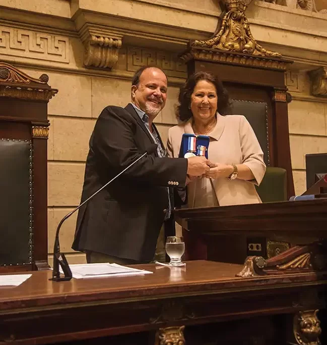 Em 2018, fomos homenageados na Câmara Municipal do Rio com a sua mais alta honraria: a medalha Pedro Ernesto. A homenagem veio pelas mãos da vereadora Teresa Bergher.